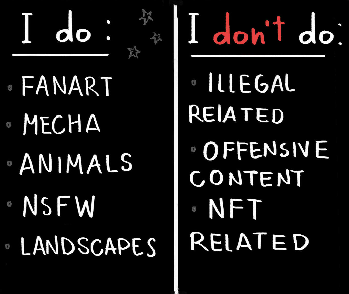 These are mostly VERY BASIC prices, I'm flexible in terms of artstyle and technique, so if you are looking for something that is not on the list feel free to ask